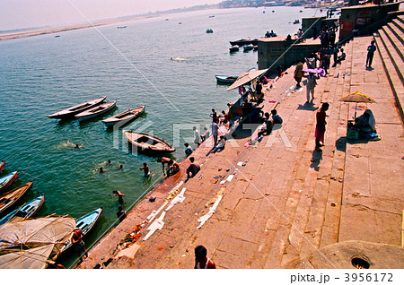 インド ヴァラナシの聖なるガンジス川沿いの風景