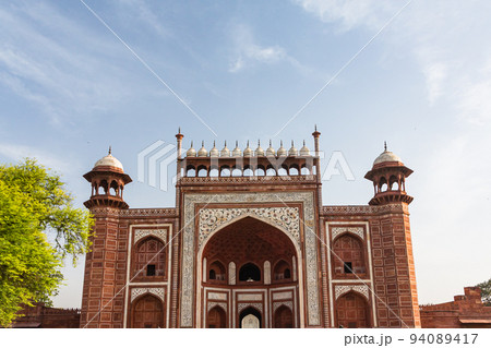 インド アーグラのタージ・マハルの庭園と大理石で作られた墓廟
