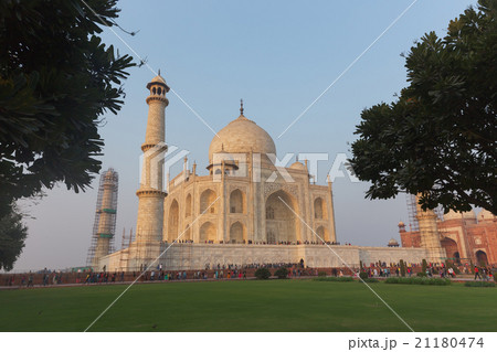 インド アーグラのタージ・マハルの庭園と大理石で作られた墓廟