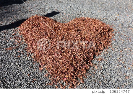 ウッドチップで形作られたハートのオブジェ