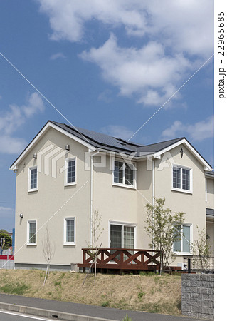 住宅 新築住宅 イメージ ソーラーパネル設置 快晴 青空 ウッドテラス付