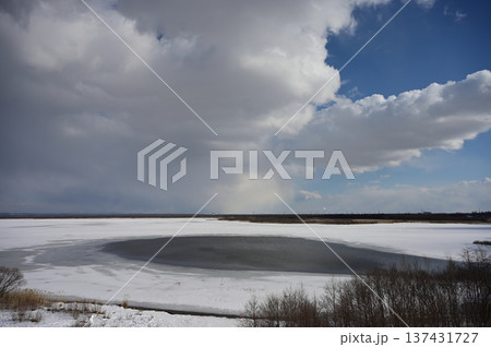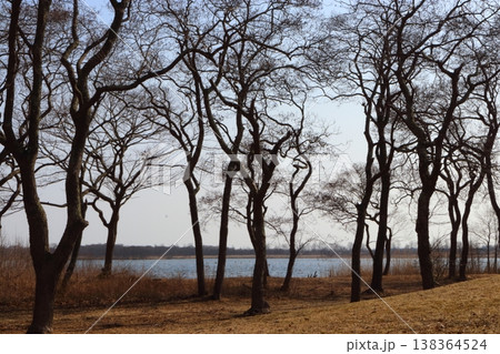 春の北海道苫小牧市ウトナイ湖の風景を撮影