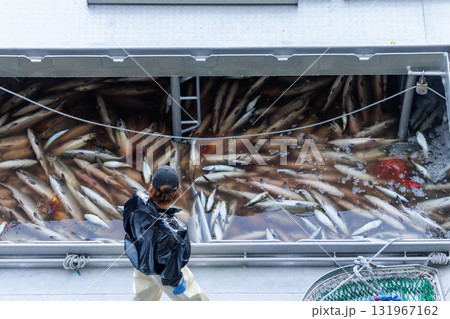 秋鮭の水揚げ(北海道ウトロ漁港)
