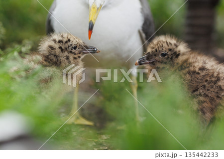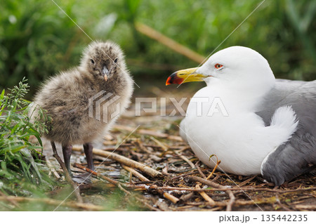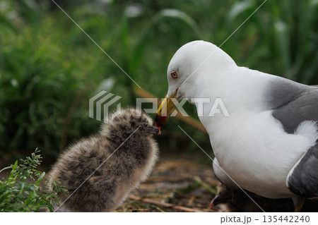 ウミネコ親鳥とヒナ