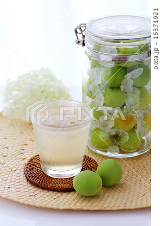 梅酒と梅の実 ウメチューハイ 手作り果実酒 梅ジュース アルコール飲料 イメージ素材
