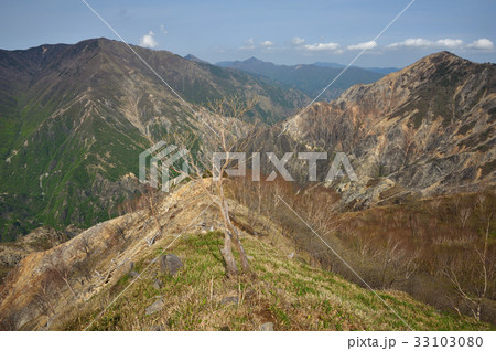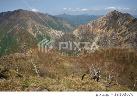 足尾鉱毒の傷跡残る渡良瀬川源流の山 ウメコバ沢の岩壁と沢入山と太平山