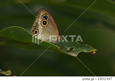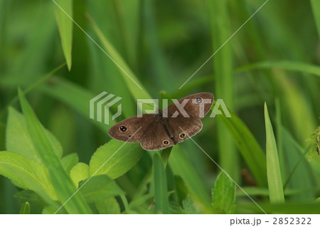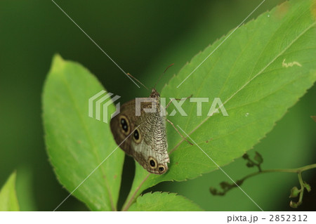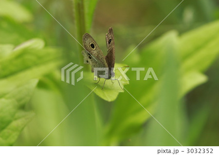 ヒメウラナミジャノメ(緑背景) 羽根を休めるジャノメ蝶