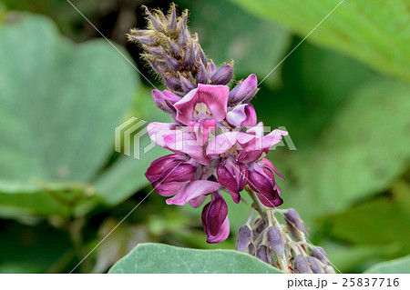 紫ピンクの濃淡がかわいらしいクズの花房(マクロレンズ使用・屋外接写画像)