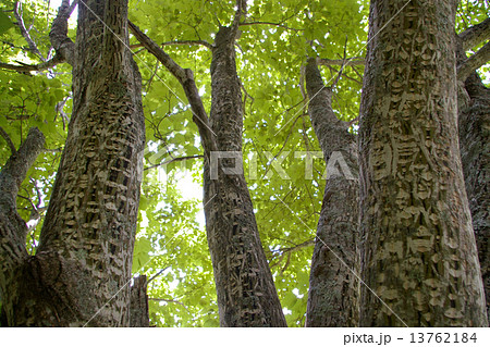 ウリハダカエデの太くなった幹の樹皮に現れた昆虫標本のような模様
