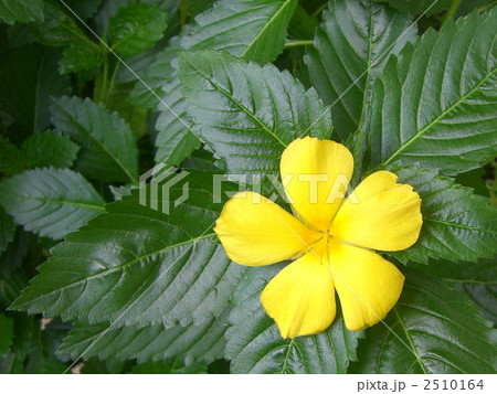 自然 植物 ツルネラ ウルミフォリア、雨上がりに鮮やかな黄色が映えますが夕方にはしぼんでしまいます①