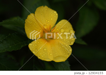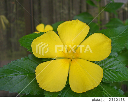 自然 植物 ツルネラ ウルミフォリア、雨上がりに鮮やかな黄色が映えますが夕方にはしぼんでしまいます②