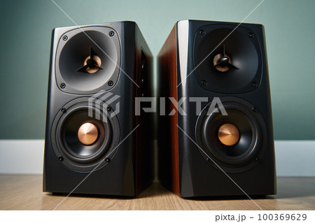 professional acoustics for listening to music in high resolution with two luxury speakers on a black