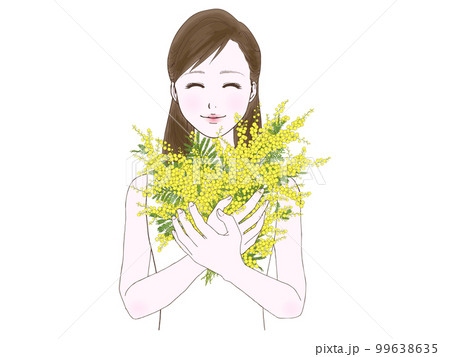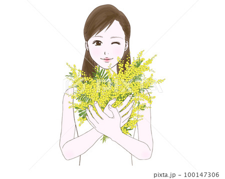セミロングの女性(ミモザ,閉眼)