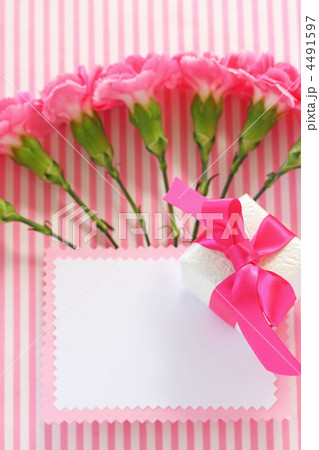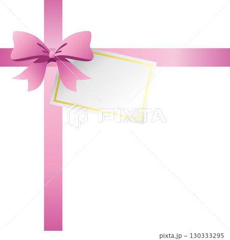 ピンク色のリボンとカードのラッピングのイラスト