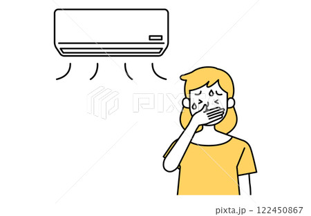 エアコンで気分が悪くなる女性のベクターイラスト 臭い 冷房病 クーラー病 吐き気 嘔吐