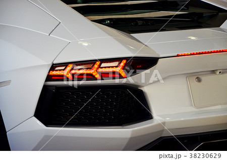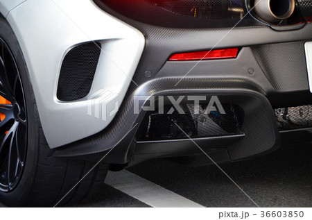 シルバーメタリックのスポーツカーのバックショット【自動車】