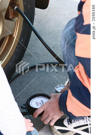 クルマのタイヤの空気入れ