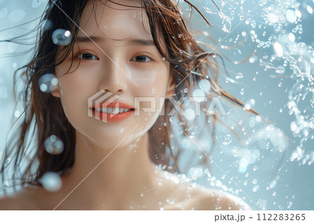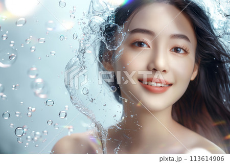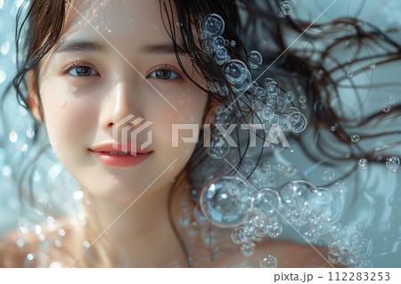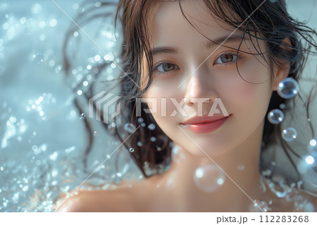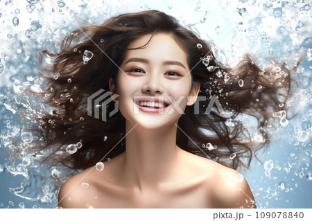 アジア人女性のヘアケア美容イメージ(ヘッドスパ・スキンケア)「AI生成画像」