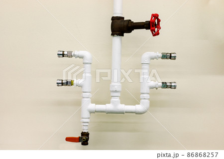 白ガス管のエアー配管 ゲートバルブとボールバルブとカプラ