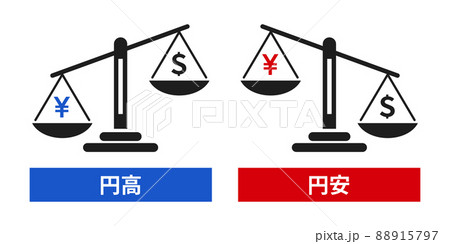 日本為替相場の円安円高の天秤を使った説明図ベクターイラスト素材