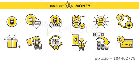 キャッシュバック、プライスダウンなど、お金のアイコンセット
