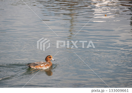 琵琶湖疏水を泳ぐヒドリガモ(オス エクリプス) 京都市
