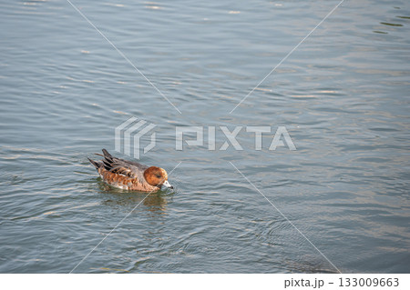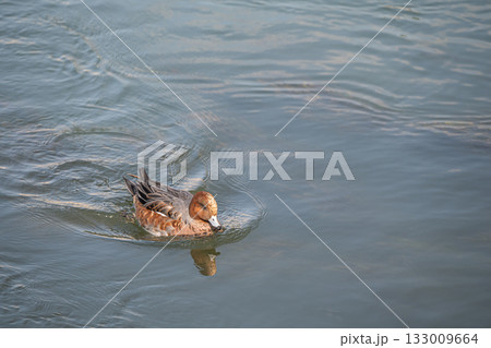 琵琶湖疏水を泳ぐヒドリガモ(オス エクリプス)