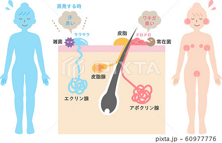 アポクリン腺とエクリン腺 汗腺 肌の断面図