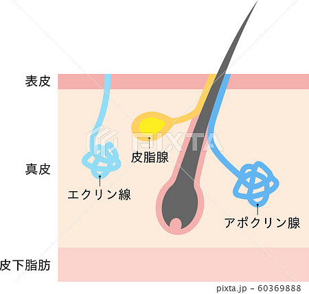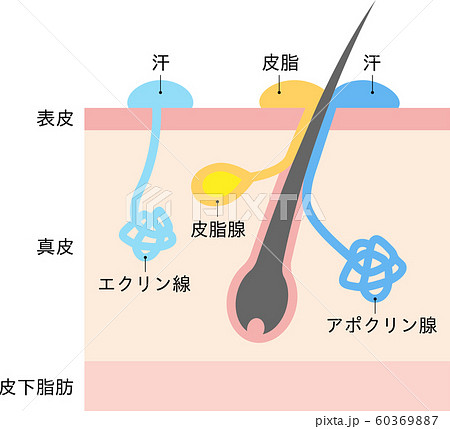 皮膚の断面図 イラスト 皮脂腺 アポクリン汗腺 エクリン汗腺