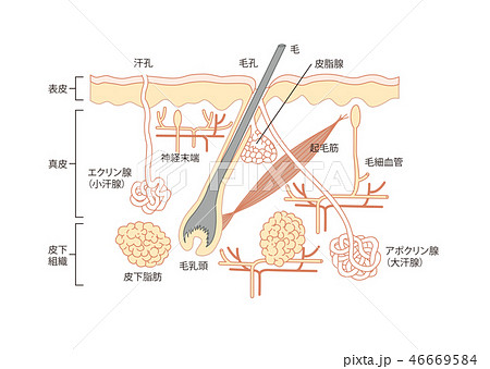 エクリン腺の画像素材(写真・イラスト)は4件あります。この検索結果では、毛球、毛乳頭、構造、毛、断面図、アポクリン腺、皮脂腺、汗孔、毛孔などの絞り込みキーワードがよく使われています。 全て表示