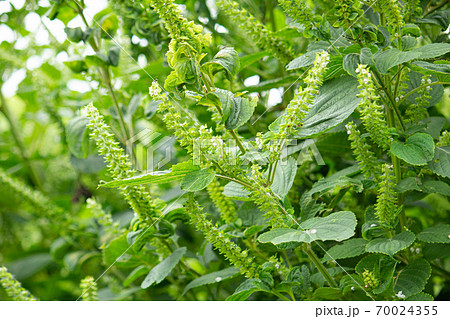 エゴマ(荏胡麻、学名:Perilla frutescens)、シソ科、健康によいオイルの原料 (日本