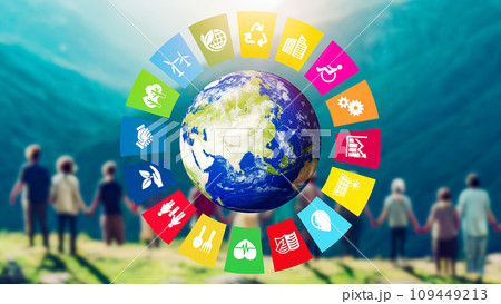 地球環境と家族イメージ サステナブルな生活 SDGs