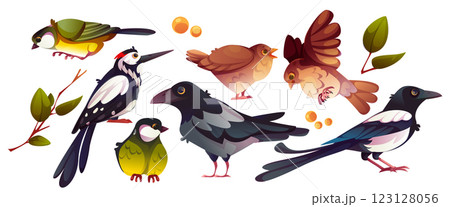 Vector crossword puzzle with forest birds. Bright and colorful quiz for children. Educational activity with woodpecker, owl, cuckoo, oriole, wren, raven.