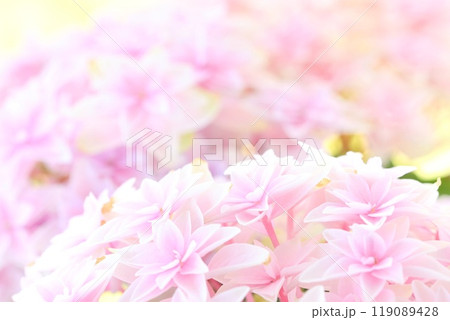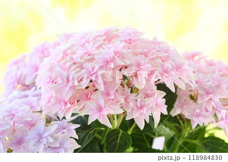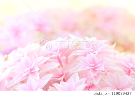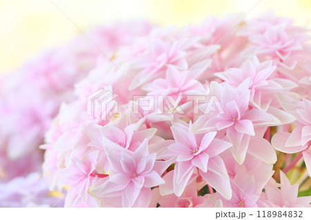 アジサイ ハイドランジア ピンク色 星形の八重咲 クローズアップ