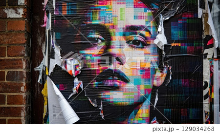 Pixelated woman face glitch artwork in bold RGB colors. Urban modern vibe with distortion effect. Digital and edgy. Generative AI.