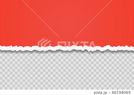 Red torn paper edge template. Ripped horizontal strips with shadows. Border texture design. Vector illustration