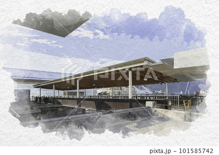 水彩画風 宮島口旅客ターミナル 桟橋 広島県廿日市市