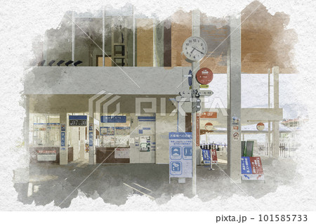 水彩画風 宮島口旅客ターミナル JR西日本宮島フェリーのりば 広島県廿日市市