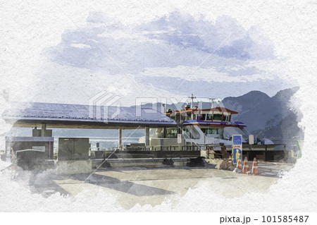 水彩画風 宮島口旅客ターミナル 宮島松大汽船フェリー 安芸 広島県廿日市市