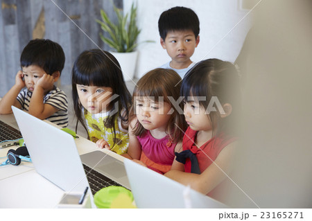パソコンを見る子供たち