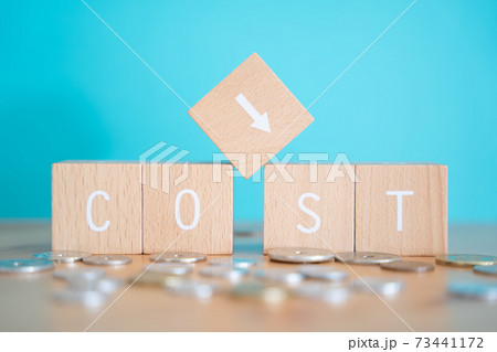 コストダウン | 「COST」と書かれた積み木ブロックと硬貨
