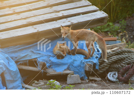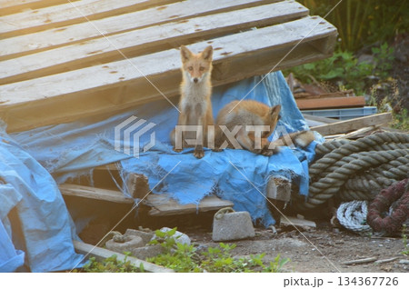 キタキツネ 2匹(北海道斜里郡斜里町)