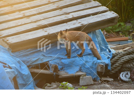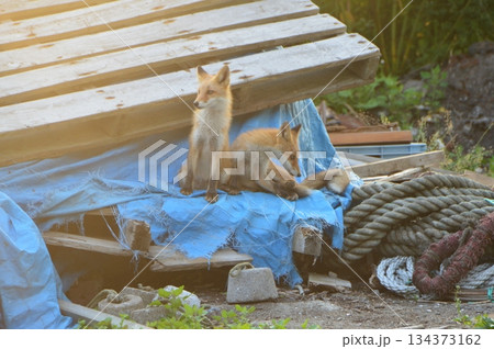 二匹のキタキツネ(北海道斜里郡斜里町)