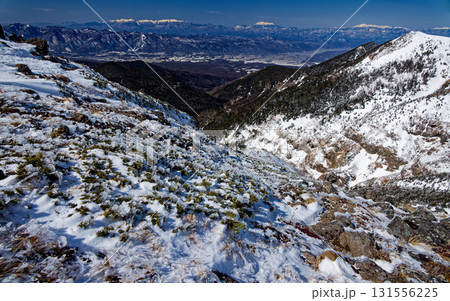 冬の八ヶ岳連峰・硫黄岳稜線から見る野辺山高原
