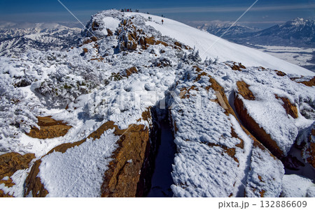 冬の八ヶ岳連峰・赤岳山頂の風景