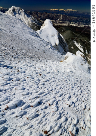八ヶ岳・赤岳の斜面のエビのしっぽと横岳・硫黄岳