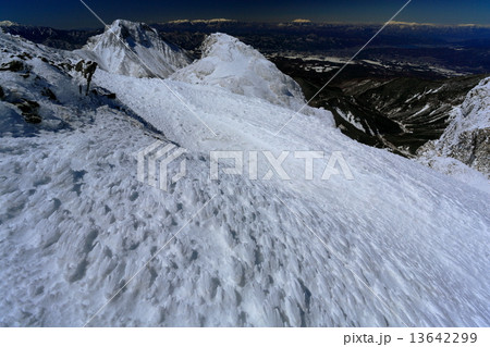 冬の八ヶ岳連峰・赤岳山頂と山小屋のエビのしっぽ