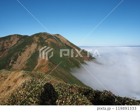 秋の平標山と滝雲1