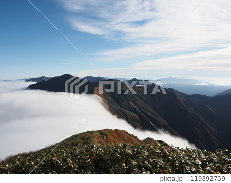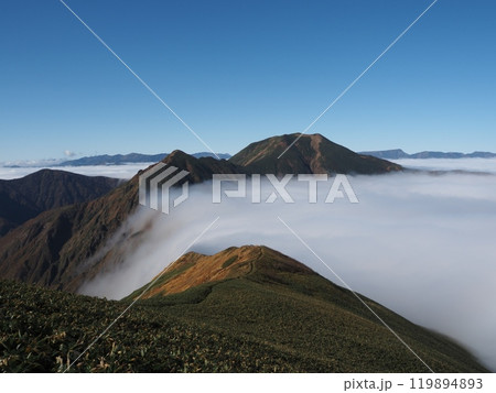 秋のエビス大黒ノ頭から見る万太郎山と雲海