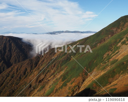 秋の平標山と滝雲4